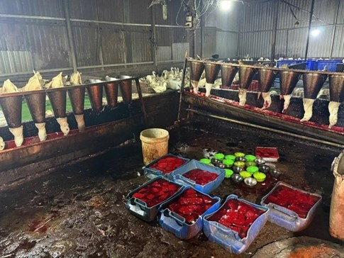 Đột kích tại 2 lò giết mổ heo 'chui' nằm sâu trong các hẻm nhỏ tại TP.HCM, lực lượng chức năng ghi nhận nhiều hành vi vi phạm. Sáng 7.4, Trạm Chăn nuôi và Thú y khu vực 2 (thuộc Chi cục Chăn nuôi và Thú y TP.HCM) phối hợp Công an phường Tân Thới Hiệp cùng các đơn vị liên quan tiến hành kiểm tra đột xuất 2 cơ sở giết mổ heo không phép nằm sâu trong hẻm đường Hương lộ 80.