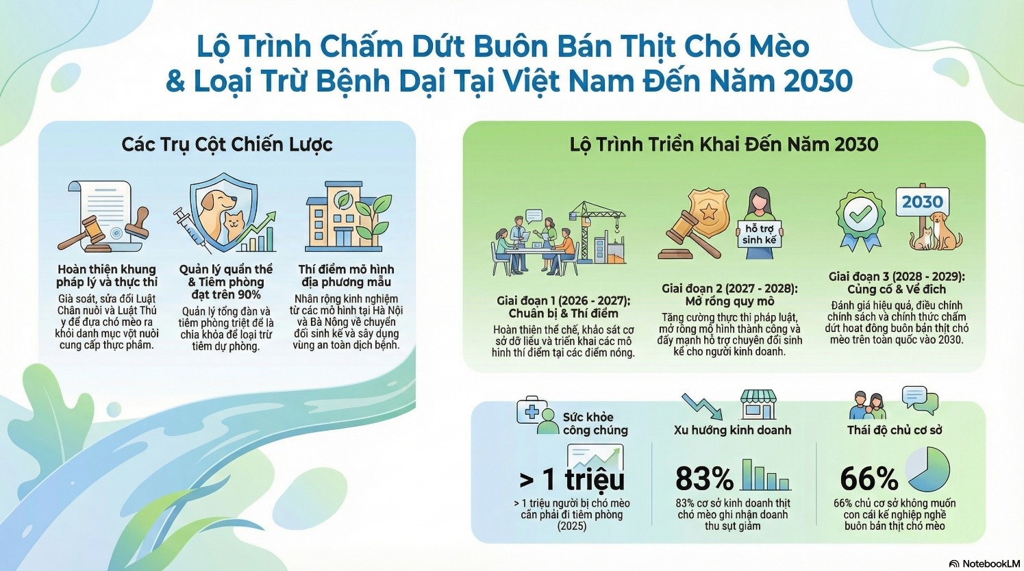 Hình 2: Sơ đồ lộ trình chấm dứt buôn bán thịt chó mèo và loại trừ bệnh Dại tại Việt Nam đến năm 2030