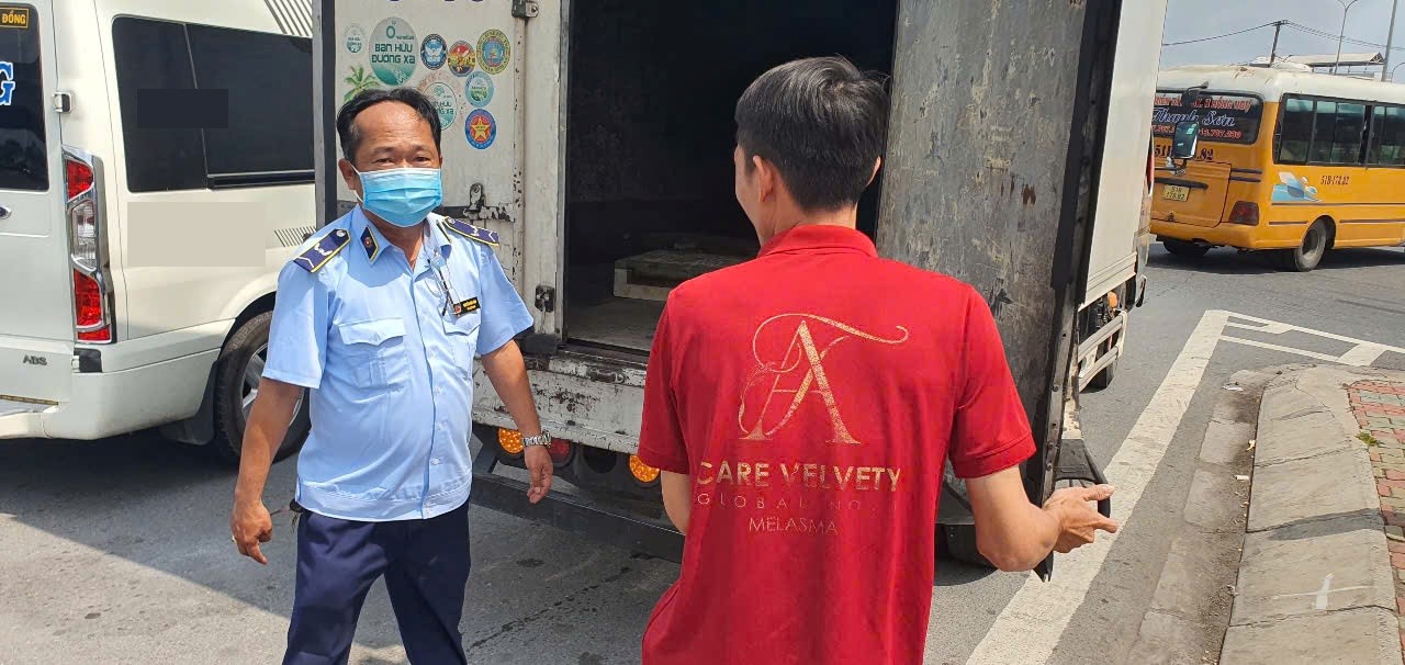 Chú thích ảnh: Tổ kiểm tra liên ngành số 1 kiểm tra việc vận chuyển động vật, sản phẩm động vật tại Ngã ba làng, Quốc lộ 1, xã Bình Chánh, Thành phố Hồ Chí Minh